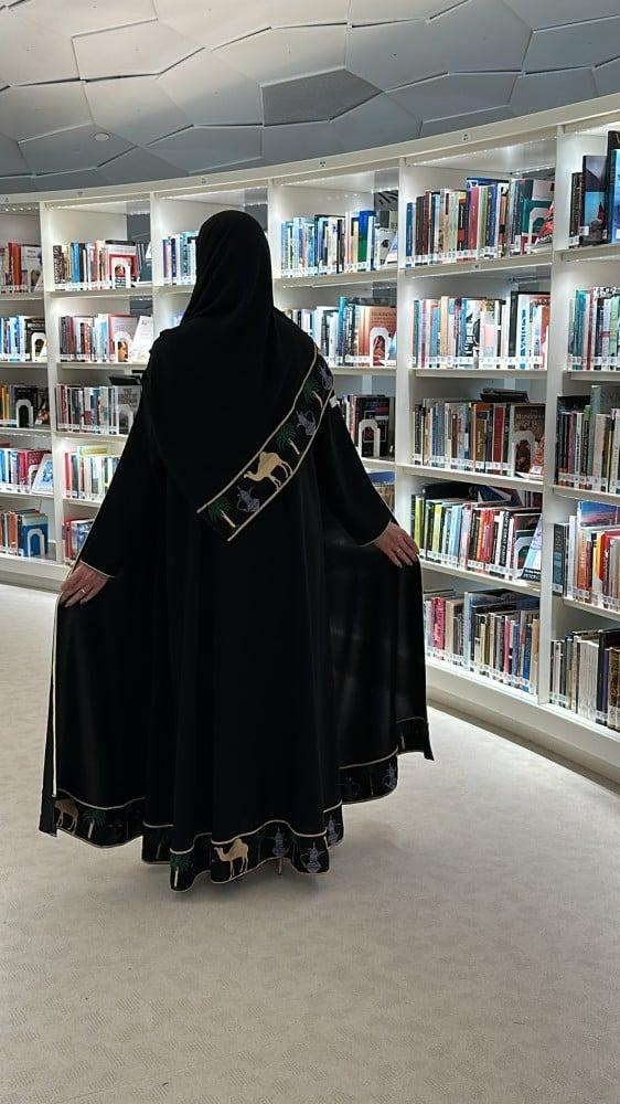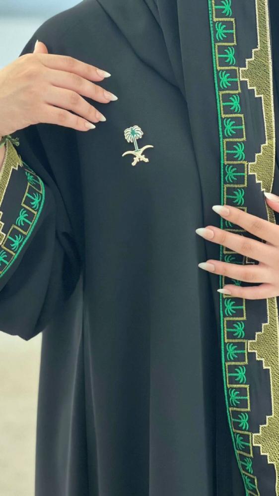 عباية ناقهالقصة A cutالأكمام قصة عاديةالقماش كريب لمياء مع كلفة طرف العباية وقيطان ذهبي في العباية من الأمام والأكمام