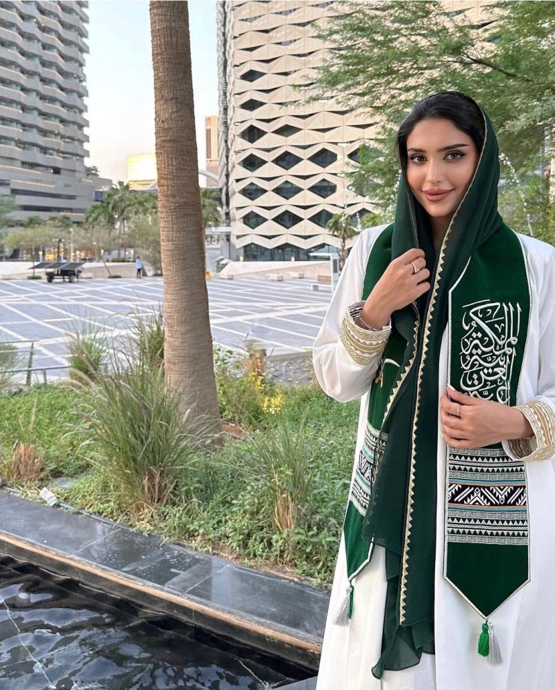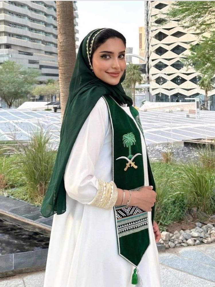 وشاح اليوم السعودي الوطنيباشكله الانيقمناسب للجنسين رجالي / نسائيمقاسات كبيرهمناسب الاجسام النحيفه والمتوسطهفاخرقصة بشكل قوس على الرقبة. تطريز بارزدقه في التصميم والألوان